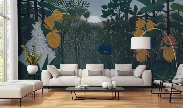 mural de papel pintado de bellas artes llamado En un bosque tropical de Henri Rousseau