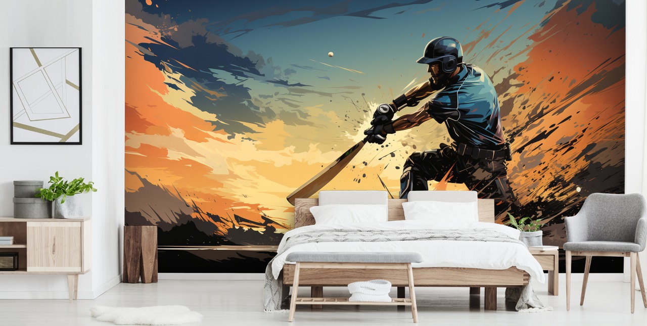 Haz que su amor por el críquet forme parte de la decoración de la habitación con este cautivador y colorido mural de papel pintado Cricket Batsman.
