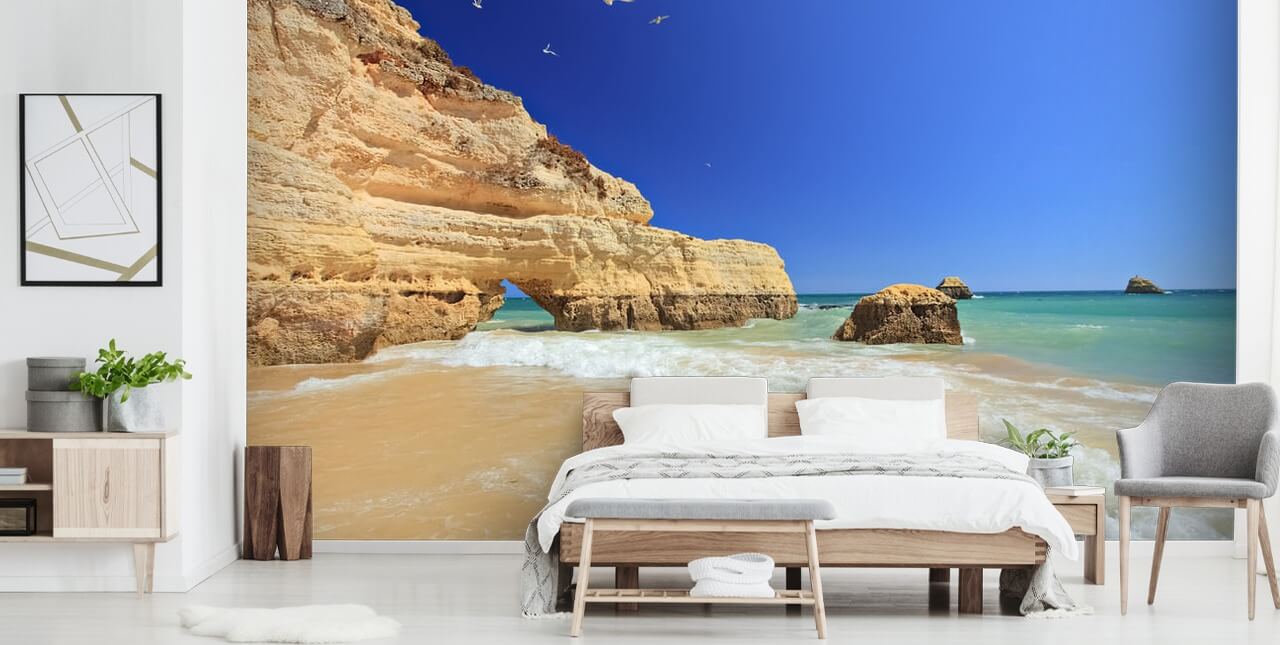 Escapa de la realidad con este impresionante papel pintado Algarve - Praia da Rocha. Hecho a medida y fácil de instalar.