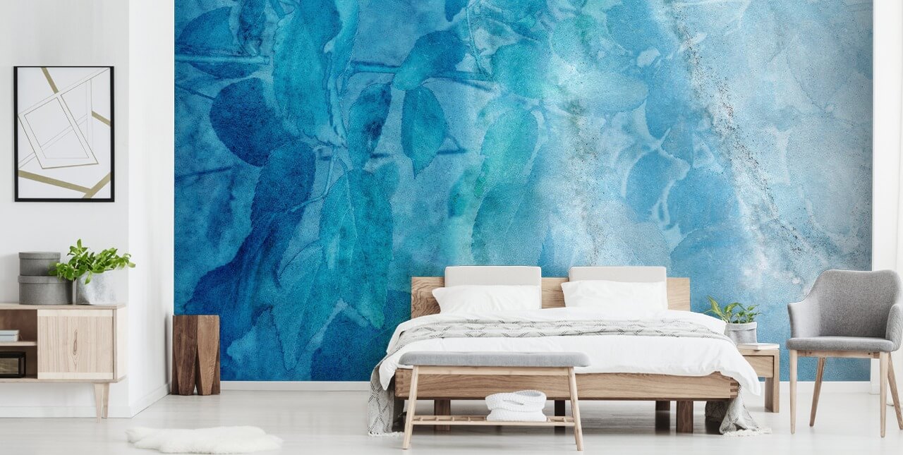 Transforma tu hogar con este papel pintado a medida de Blue Leafy Marble.