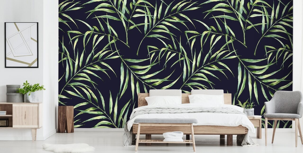 Dale un aspecto oscuro y atrevido a tu hogar con este papel pintado tropical con estampado de palmeras botánicas de Wallsauce.com. Con hermosos tonos de verde y negro, este impresionante papel pintado de color verde oscuro puede resultar atrevido, pero sin duda es genial.