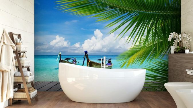mural rosa personalizable de papel pintado floral llamado Pink Orchids para spas, hoteles y baños