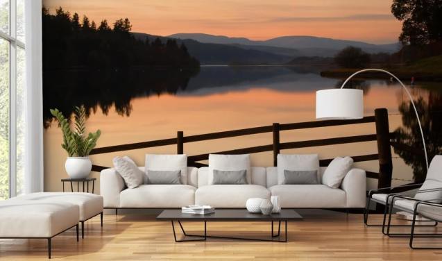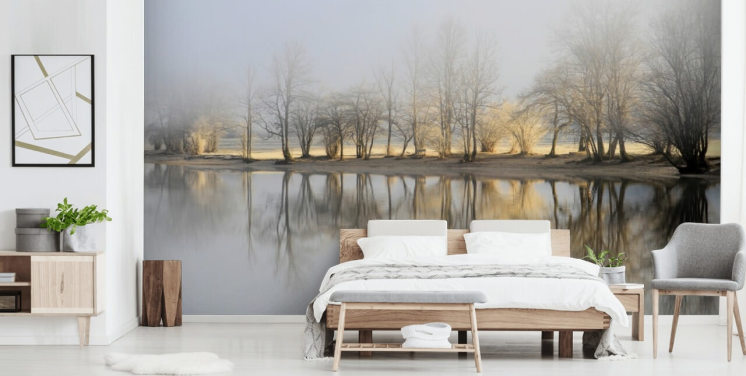 papel pintado con paisajes neutros llamado Neutral Ombre Watercolour Landscape de Bloomery Decor para dormitorios, comedores y oficinas en casa