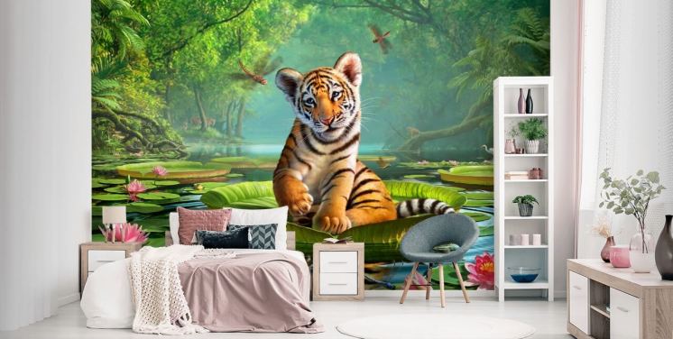mural de papel pintado de animales de la jungla llamado Leopard In Jungle de Jan Patrik Krasny para dormitorios de niños