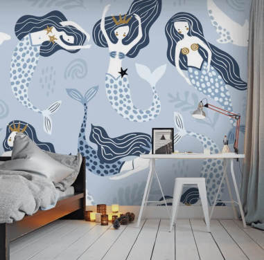 fondo de pantalla de sirenas y delfines de dibujos animados azules