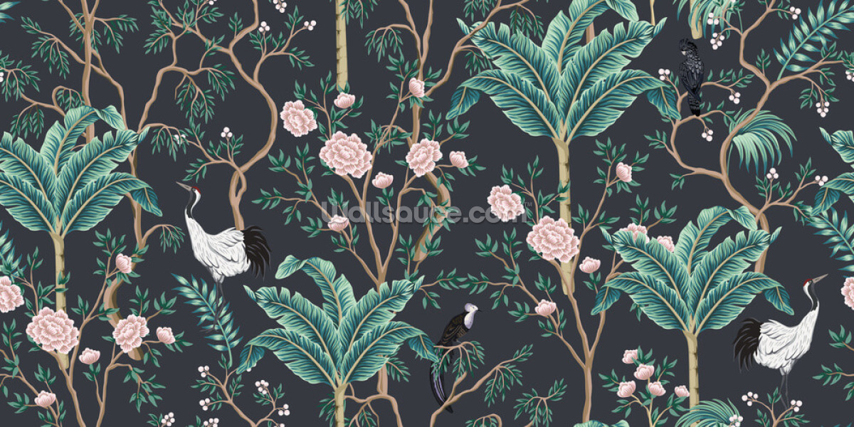 ¡Instala este hermoso papel pintado Dark Chinoiserie en tu casa! Hecho a medida para adaptarse perfectamente a tu pared.