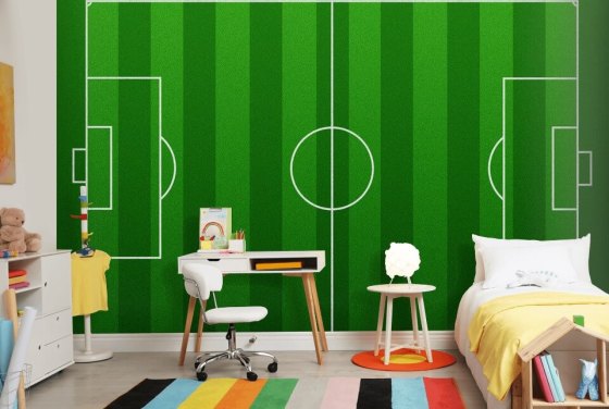 ¡Da inicio a la decoración de tu hogar con un increíble papel pintado de fútbol! Demuestra tu pasión por el fútbol con un impresionante mural de fútbol en la habitación de tu adolescente aficionado a los deportes, en la fantástica sala de juegos o en la cueva secreta de un hombre. ¡Combínalo con artículos de tu equipo favorito, como colchas y cortinas, para crear una habitación con la mejor temática futbolística!