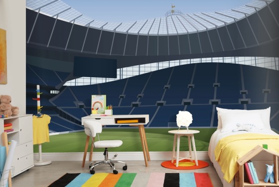 papel pintado azul y verde de un estadio de fútbol llamado Tottenham Hotspur Stadium Football Stadium de Matthew J I Wood Diseño e ilustración para dormitorios de niños