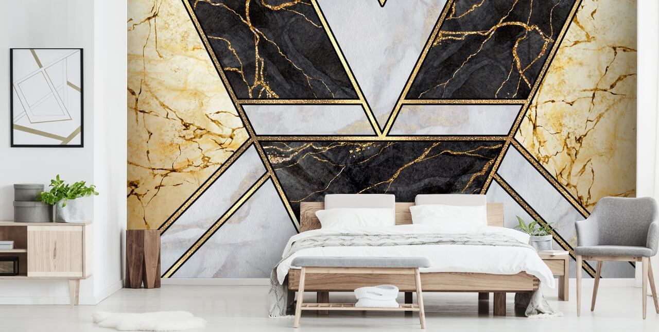 ¿Te encanta el art deco? Echa un vistazo a este papel pintado de mármol dorado hecho a medida.