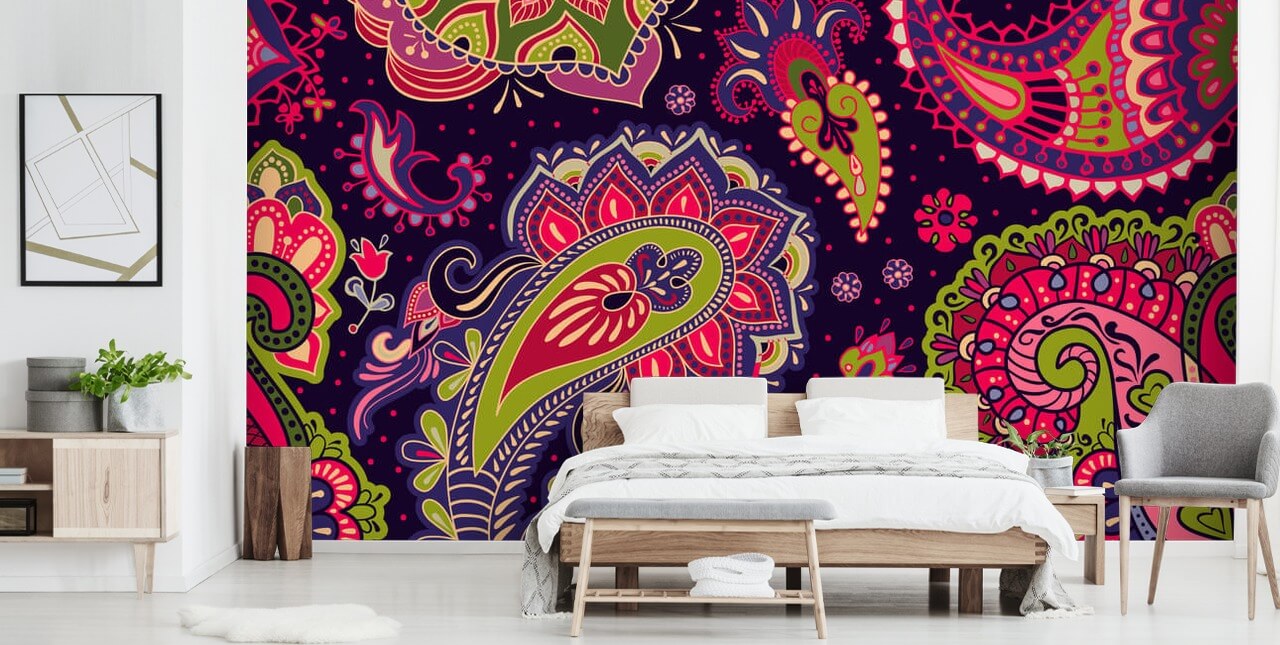 ¿Te gustaría disfrutar de este mural de cachemira en tu propia casa? Luego, haga su pedido en línea indicándonos las dimensiones de su pared y la elección del material de papel tapiz. Ofrecemos pasta clásica o premium para pegar en la pared o texturizada para despegar y pegar.