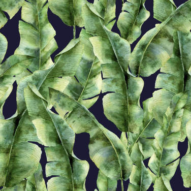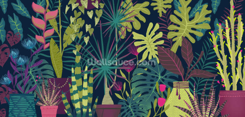 mural de papel pintado tropical personalizado azul oscuro y verde llamado Luscious Tropical Wall para dormitorios