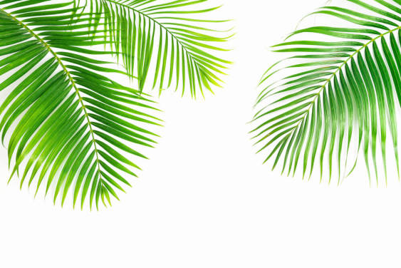 mural de papel pintado con hojas verdes personalizables llamado Hojas de palmera para cocinas o dormitorios