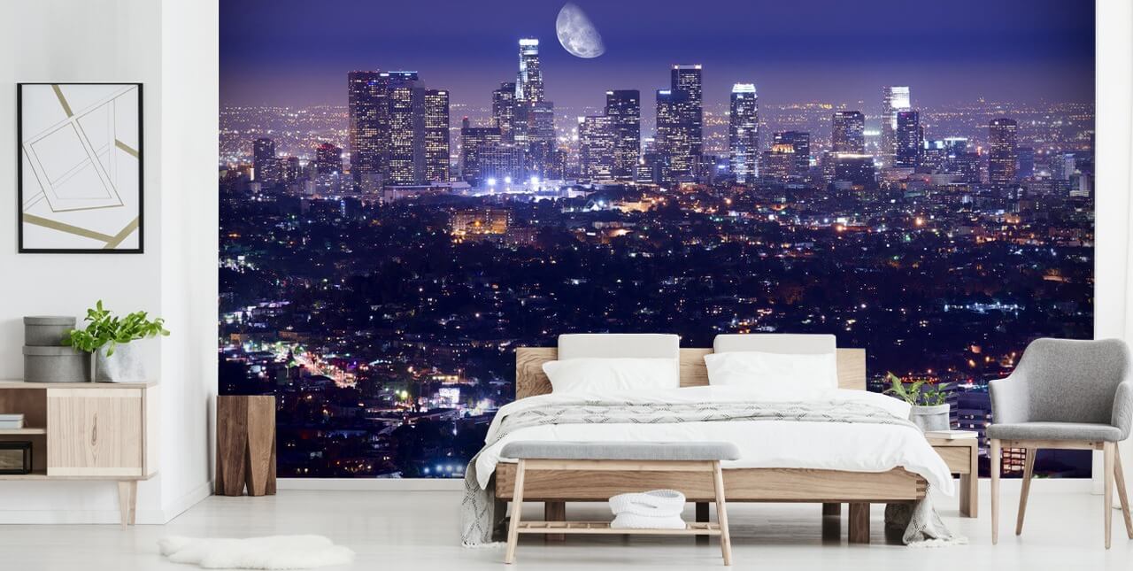 Adorna tu pared con este papel pintado hecho a medida de Los Ángeles en la noche.