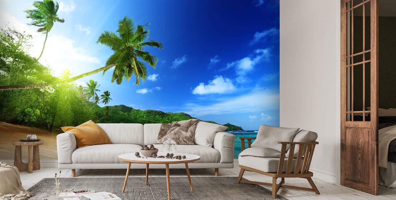Feel like you're always on vacation with this stunning Mahe Island Seychelles wallpaper. Custom-made to fit your wall.