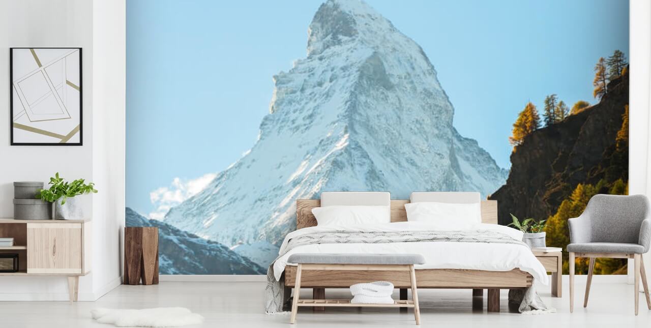 Instale este mural de pared hecho a medida Matterhorn, Alpes suizos y recuerde sus maravillosas vacaciones en los Alpes.