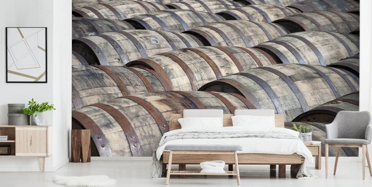 Adquiera este papel pintado personalizado de barriles de whisky de roble para transformar su destilería o su hogar.