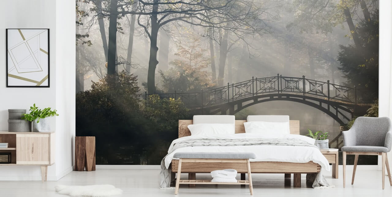 Transforma tu hogar con este papel pintado a medida de Old Bridge in Misty Autumn Park. Hecho a medida para adaptarse perfectamente a tu pared.