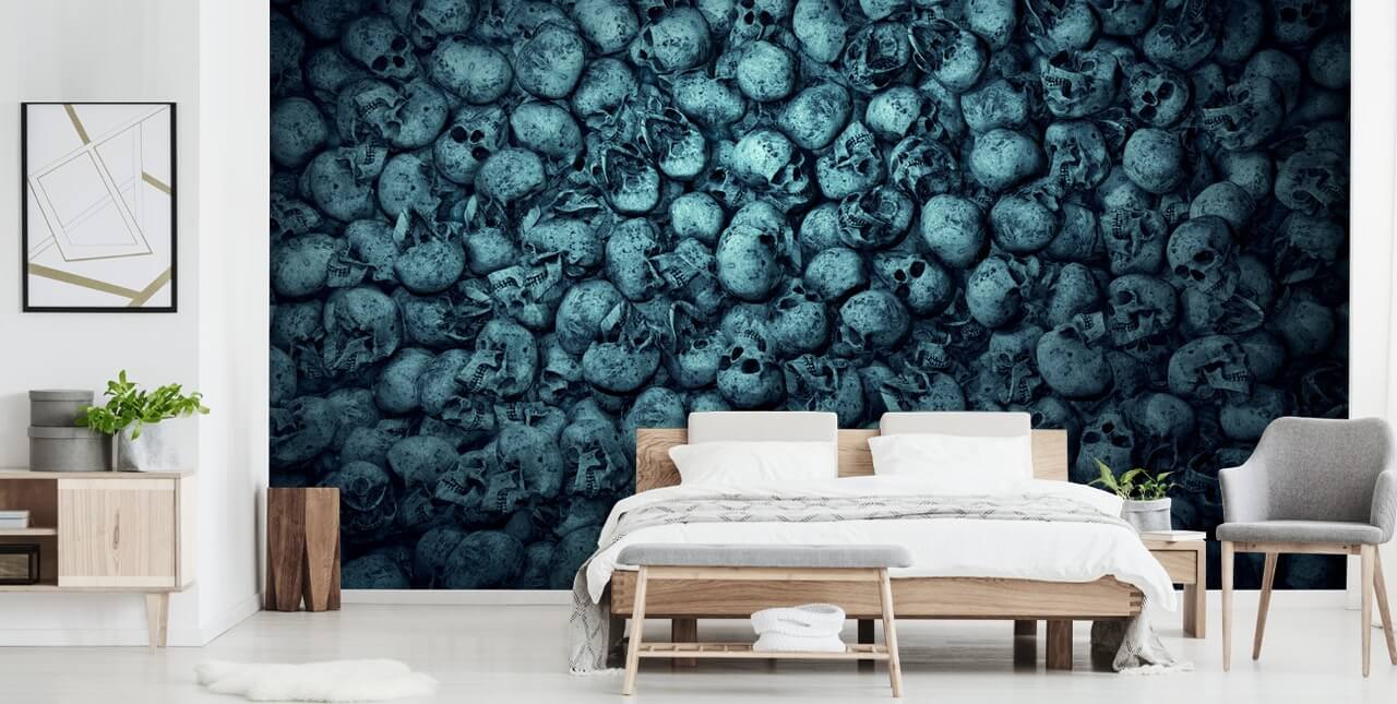 Elija este mural de pared Skull Pile hecho a medida disponible en Wallsauce.