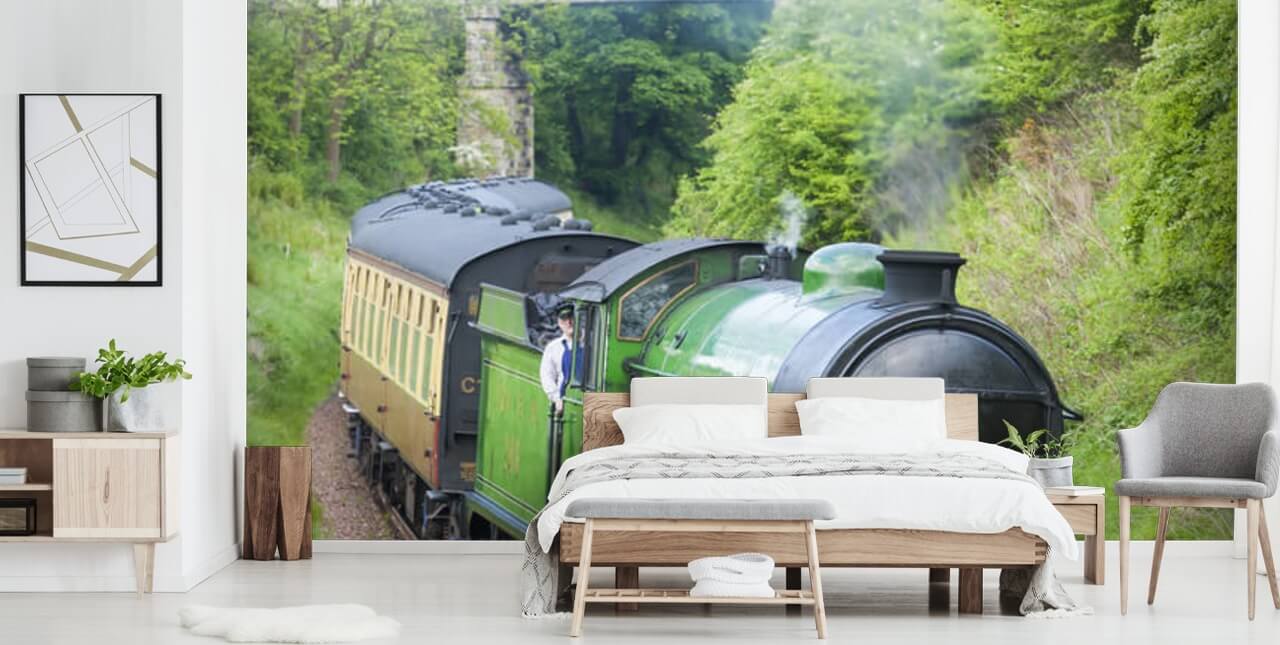 Si eres fanático de los trenes, instala este mural de pared hecho a medida del tren de vapor en el campo en tu casa o lugar de trabajo.