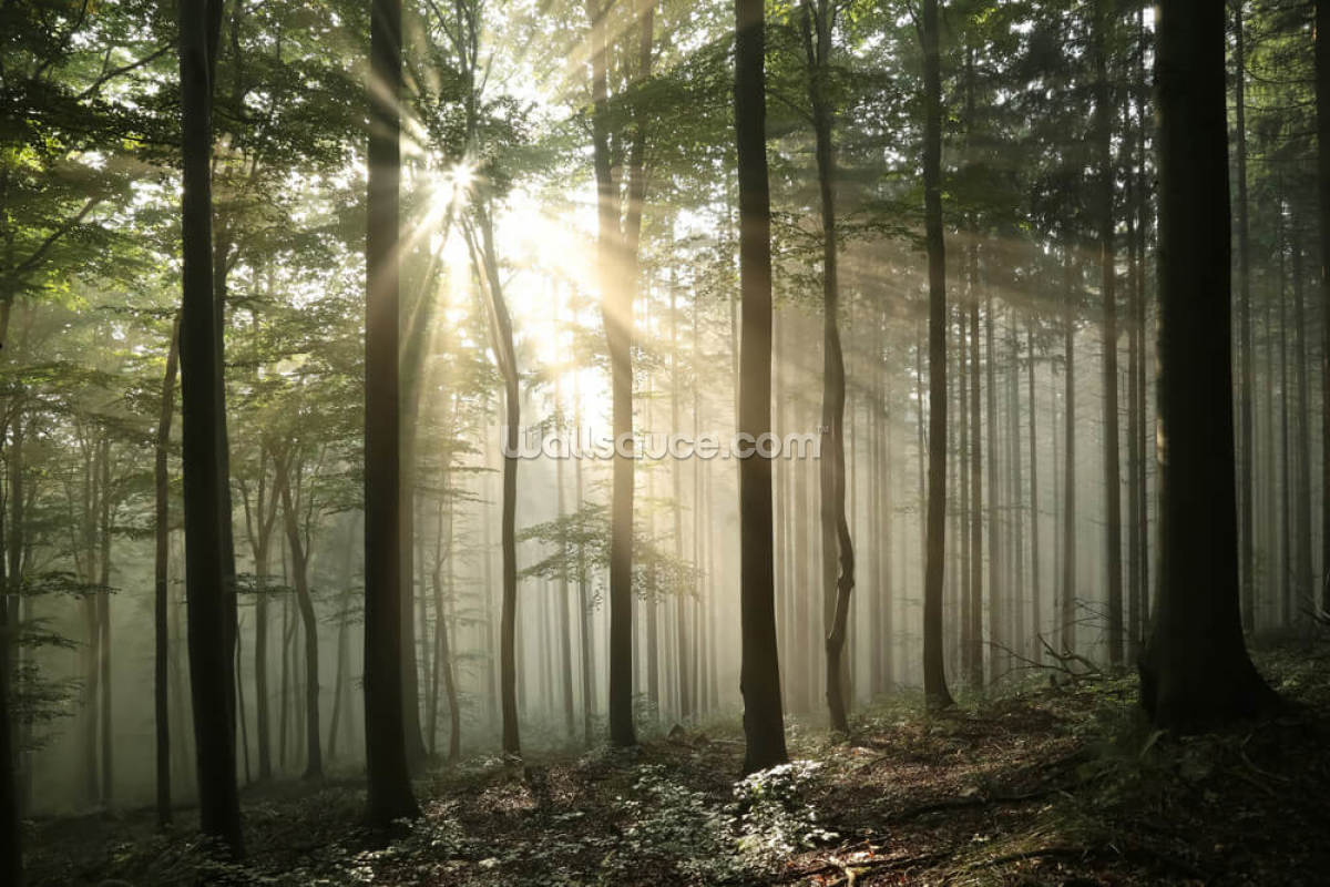 Siéntete rodeado de naturaleza en tu propia casa con nuestro papel pintado personalizado de Sunrise in the Forest.