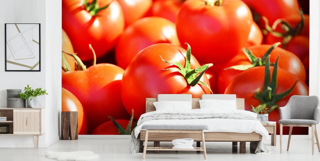Consigue este papel pintado de Tomatoes hecho a medida para alegrar la pared de tu cocina.