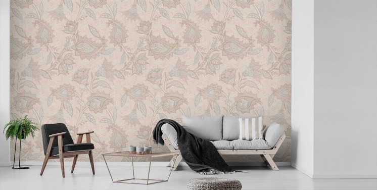 Papel pintado floral personalizable de color beige y marrón llamado Aged with Beauty de Mandy Disher para dormitorios, salas de estar y comedores