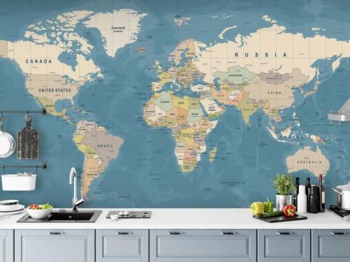 mural de papel pintado vintage personalizado de mapa mundial llamado Political World Map Vintage Colours para oficinas