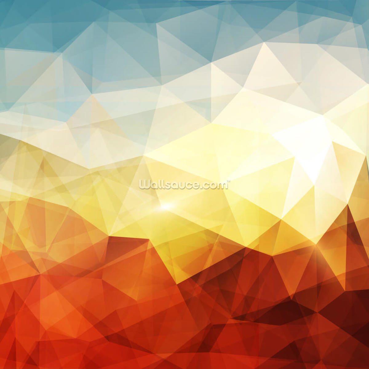 Con tonos pastel de azul, naranja quemado, amarillo y blanquecino, este impresionante mural de papel pintado cálido es sin duda un papel pintado geométrico llamativo.