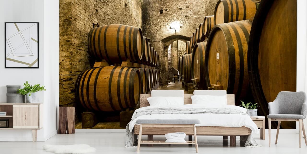 Papel pintado de barriles de vino hechos a medida en la antigua bodega de wallsauce, diseña tu cocina o bodega alrededor de tu bebida favorita y crea un lugar atmosférico para acompañar tu tinto o blanco.