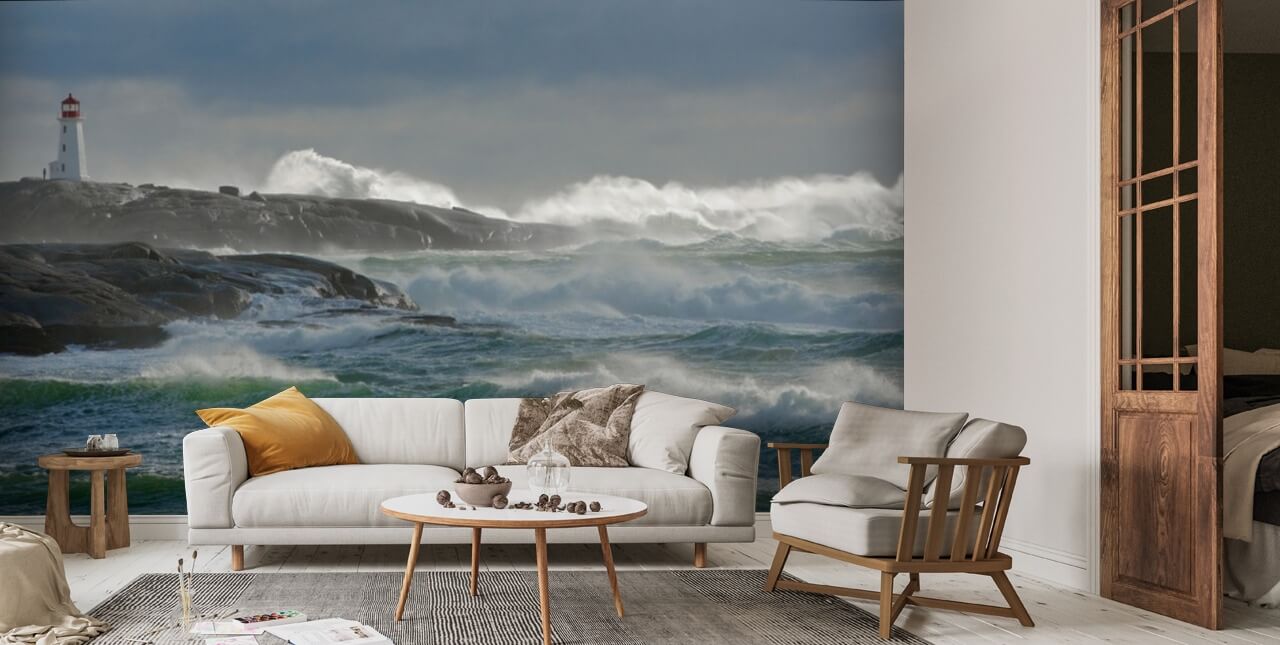 This image was taken after the passing of a winter storm. The sky had begun to break. The wind was blowing 25 knots gusting to 38 knots and the temperature was a chilly 2 deg C. A lone individual stands in the shelter of the lighthouse while watching the waves put on their display. I shot this image from the protection of my truck parked alongside the highway. I was shooting out the window trying to avoid the heavy salt spray coming in from the sea.