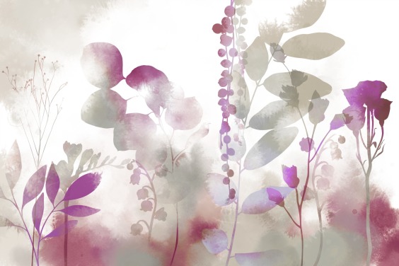 mural de papel pintado floral personalizable de color morado llamado Moody Maroon de Uta Naumann para dormitorios