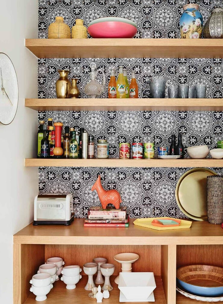 You can give your shelves a spruce by arranging things in an orderly fashion. At the same time, you can create that wow factor with an impactful wallpaper design and grant your prized crockery a stage rather than hiding them away in a dark cupboard somewhere.
