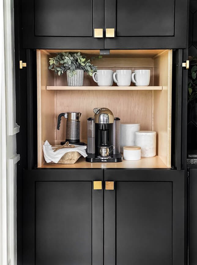 black cabinet with coffee station in middle