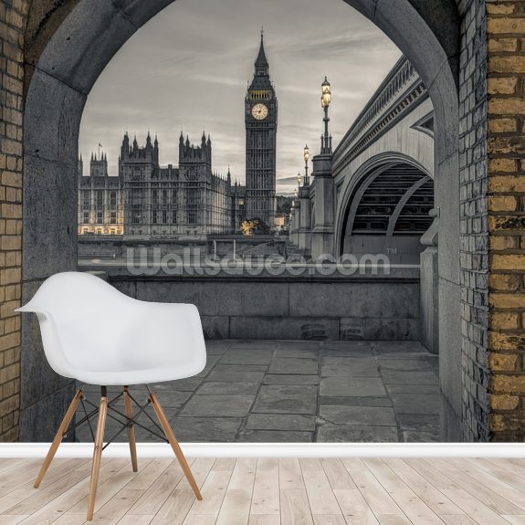 Custom Made wallpaper mural of Westminster Abby and Big Ben from Thames Promenade.