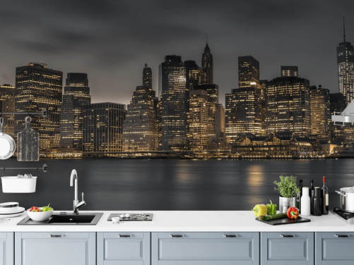 Manhattan Skyline with Rows of Groynes Wallpaper