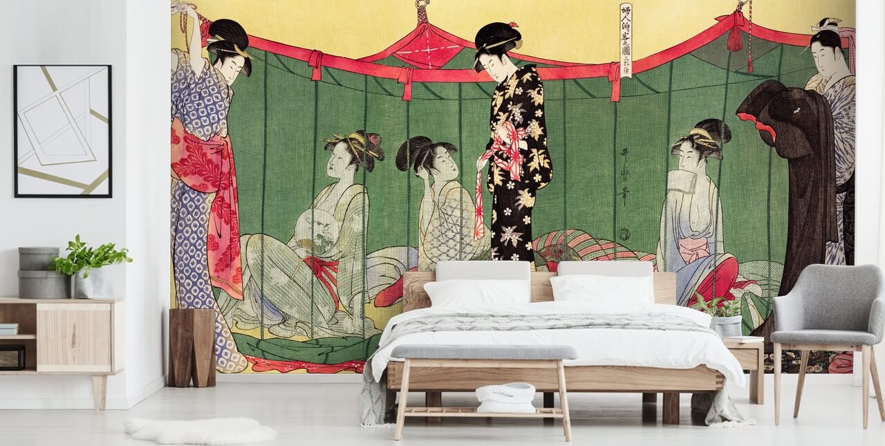 Perfect for any living space, this Asian wallpaper would look particularly good in a boudoir as the geisha girls themselves appear to be resting.