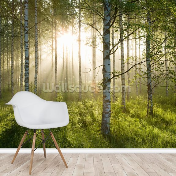 Create the perfect feature wall with this custom-made Birch Forest Sunlight wallpaper mural.