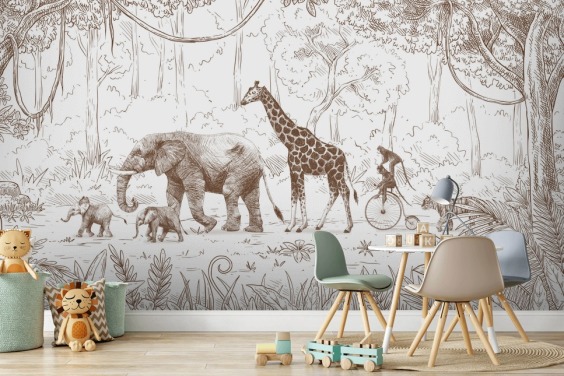 kids jungle wallpaper with animals in blue
