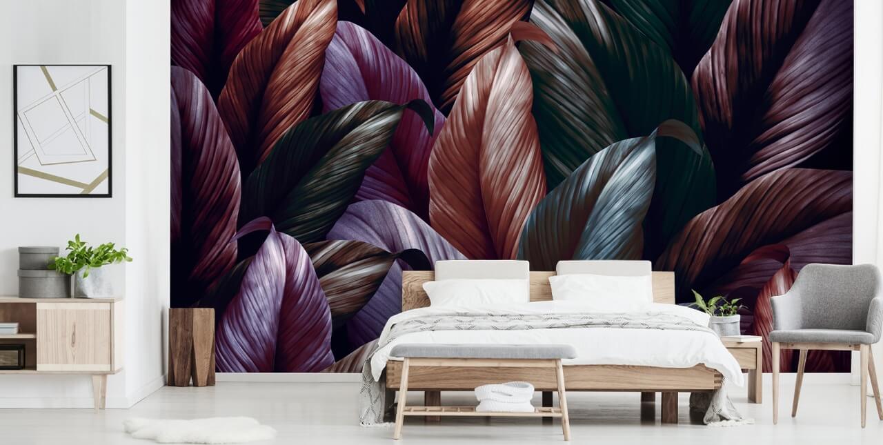 Bring dark floral wallpaper beauty into your home with this made-to-measure Purple Leaves wallpaper from Wallsauce.com.