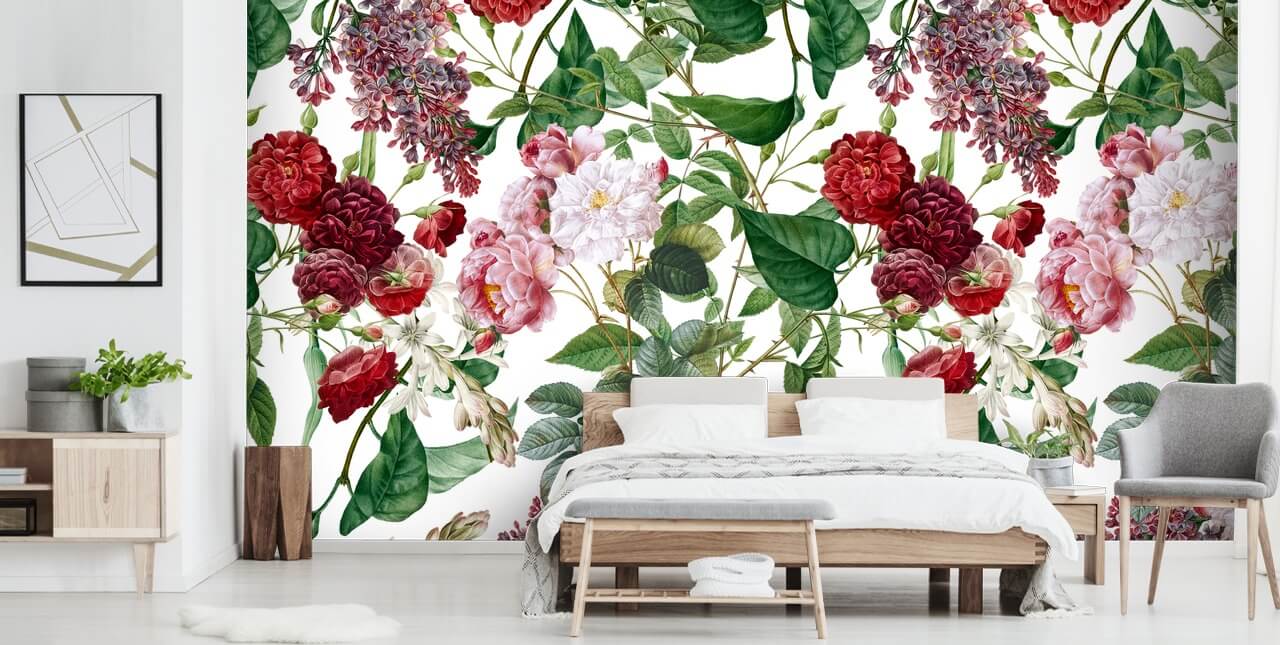 Ideal as a pretty floral wallpaper feature wall in your home, we think that it would be the perfect addition to a beautiful master bedroom. Place it on the wall behind your bed and paint the walls in a pastel pink shade. Choose white bedding and an assortment of red, maroon and pink scatter cushions to mirror the colour of the flowers.