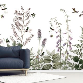 blue and white custom meadow flowers wallpaper mural called Blue Wild Meadow by Sir Edward for bedrooms