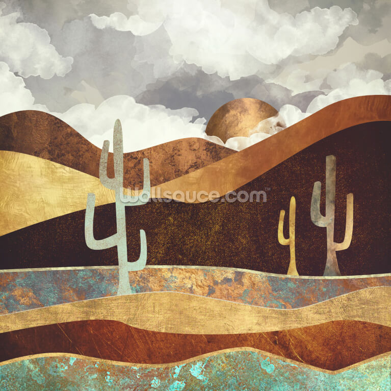 Grey, Gold and Black Abstract Mountain Landscape Wallpaper