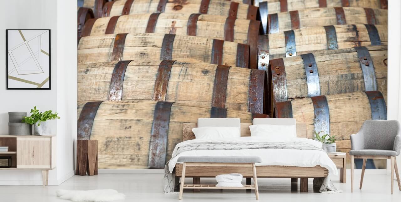 Install this custom-made Bourbon Barrels wallpaper in your home or business.