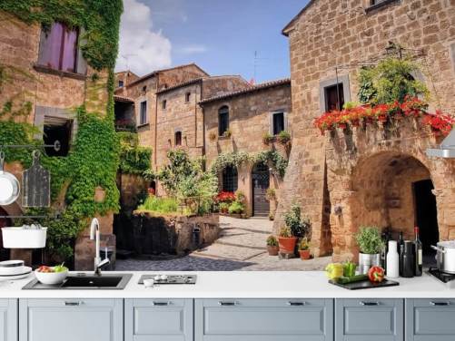 Add culture and interest to your room with a stunning facade wallpaper mural. Browse our vast collection of facade murals and choose from ancient doorways and historical village streets to Mediterranean street views in Tuscan villages, medieval Mallorcan towns and even Greek Islands.