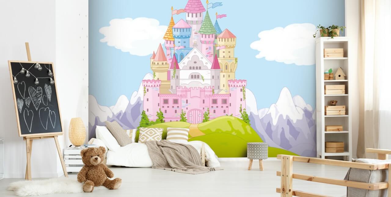 Step into fairy tale land with our magical Fairytale Castle Landscape wallpaper. Just imagine your child’s face when they see this princess castle feature wall in their bedroom!