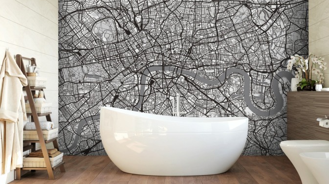 white and green map of london wallpaper called Detailed Map of London for bedrooms, home offices and dining rooms