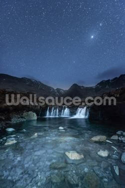 purple and blue waterfall wallpaper called Banyue Waterfall for living rooms, home offices and businesses