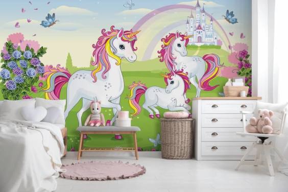 Unicorns, rainbows, horses, enchanting forests, abstract mountains, pop art, colourful patterns - we have a huge collection of wall murals that are perfect for a girl’s bedroom. Whether they love things pretty in pink or dark green and mysterious, they are sure to find something they love in our range of wallpaper for girls' bedrooms.