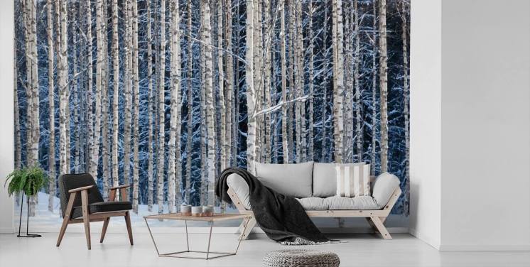 valkoinen muokattava koivun taustakuvamaalaus nimeltä White Birch Forest In Summer olohuoneisiin