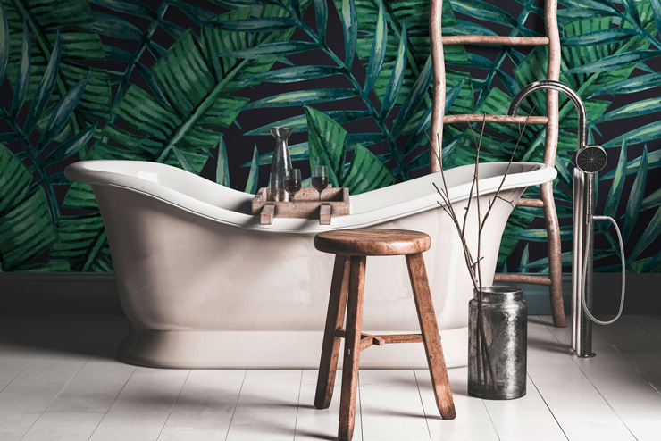 Tämä Watercolour Tropical Palms -tapetti sopii erinomaisesti seinälle, ja se sopii hyvin yhteen puhtaiden, valkoisten kylpyhuoneiden ja metalli- tai teollisuuspintojen kanssa. Täydennä viidakkoilmettä kauniilla kylpyhuonekasveilla, kuten saniaisilla, bambukasveilla ja murattipihlajalla.